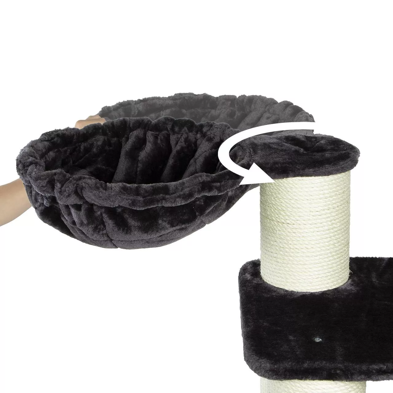The rotatable hammock is a special place for your cat to curl up and have a special snooze.
