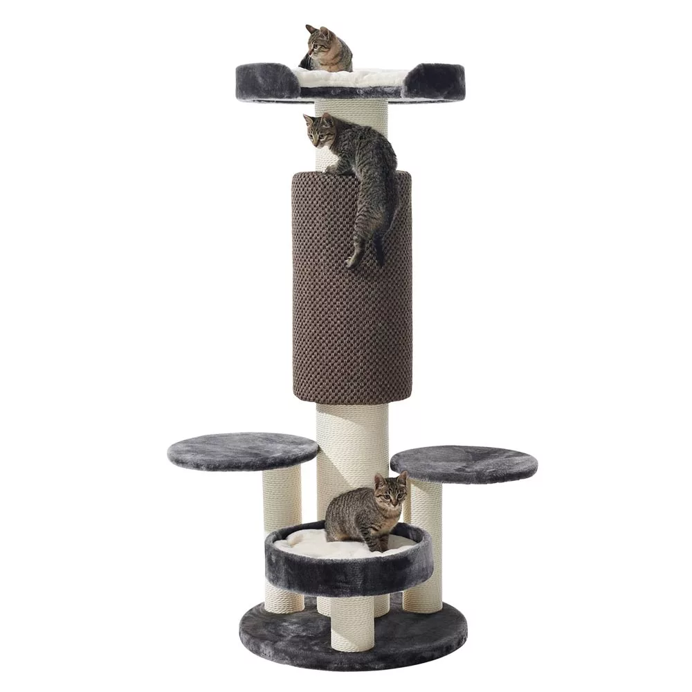 One of the most eye-catching parts of this cat tree is the central column which has a chunky sisal carpet attachment that assists with the climb to the top for your feline friend.