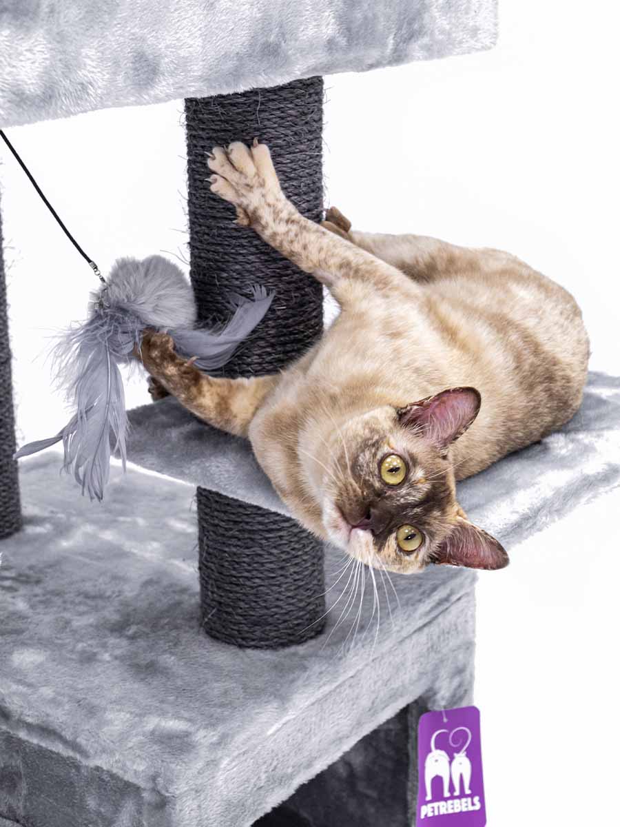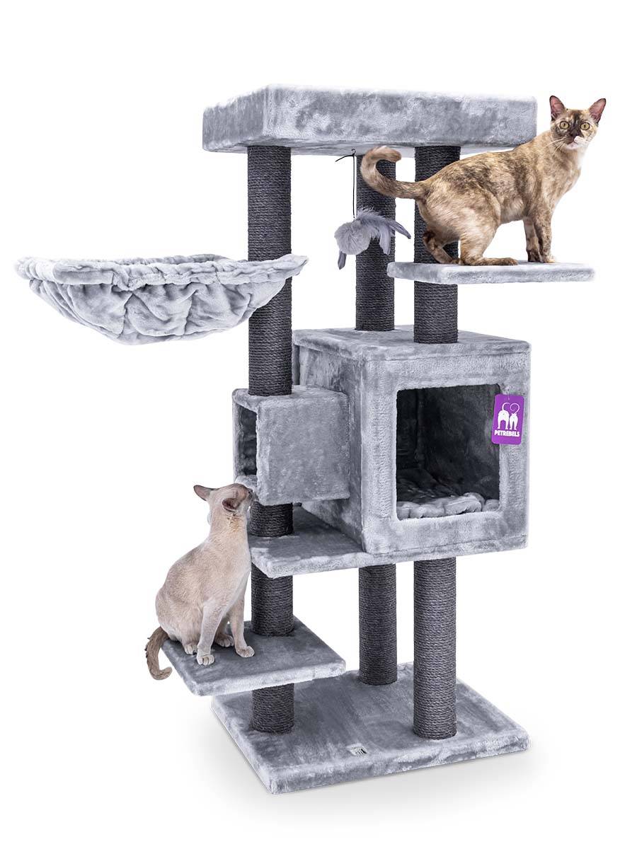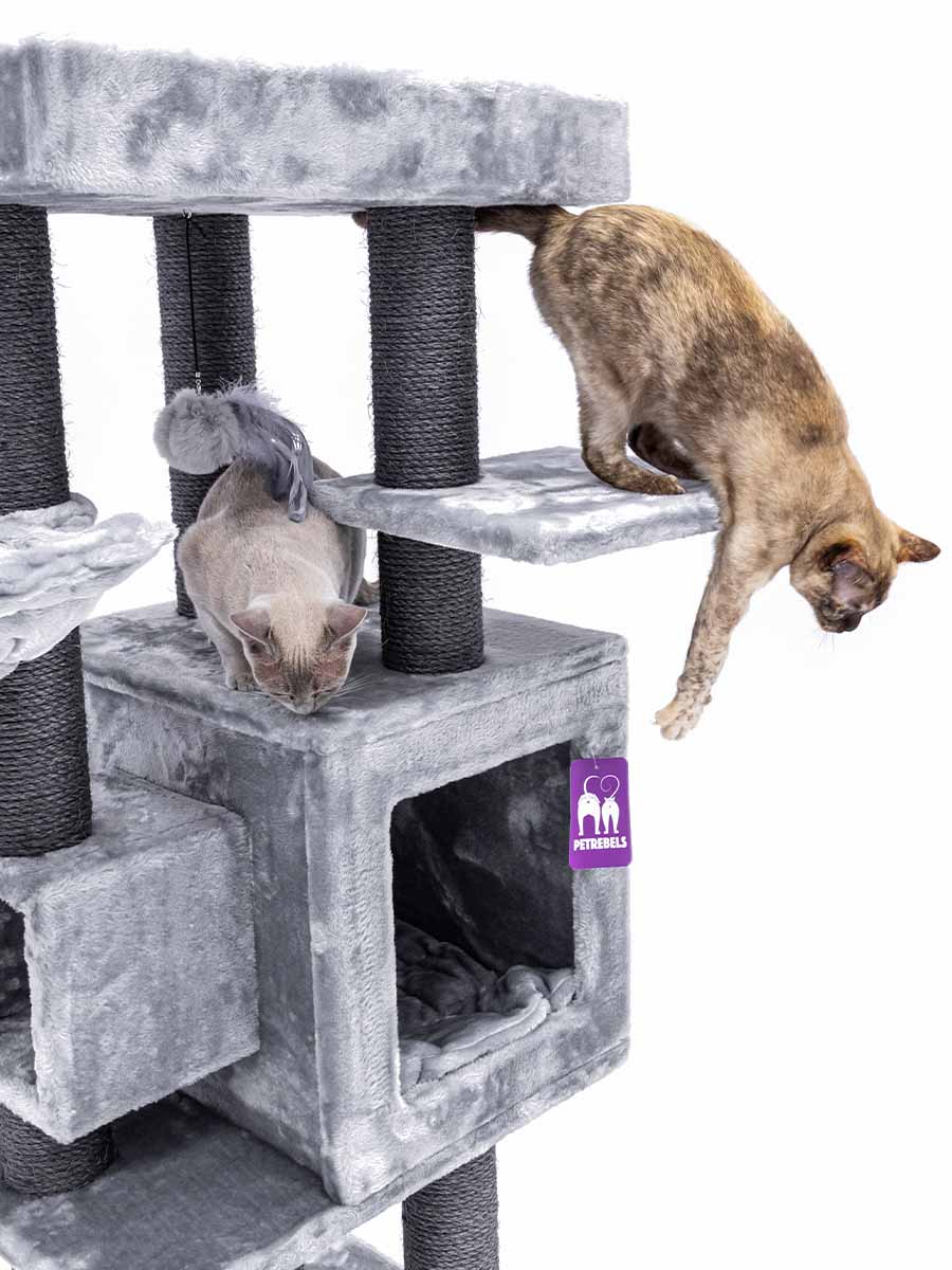 The Cleopatra 134 boasts extra thick scratching poles, providing the perfect platform for your cat’s manicure needs. These robust scratching poles are wrapped in natural grey sisal, ensuring durability and longevity, while also catering to your cat’s innate need to scratch and flex.