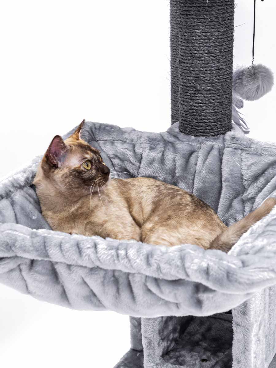 When the day’s duties are complete, the Cleopatra 134 provides multiple relaxation options. Your cat can enjoy a peaceful nap in the luxurious hanging basket or the super cozy sleeping house, designed with the finest plush material for ultimate comfort.