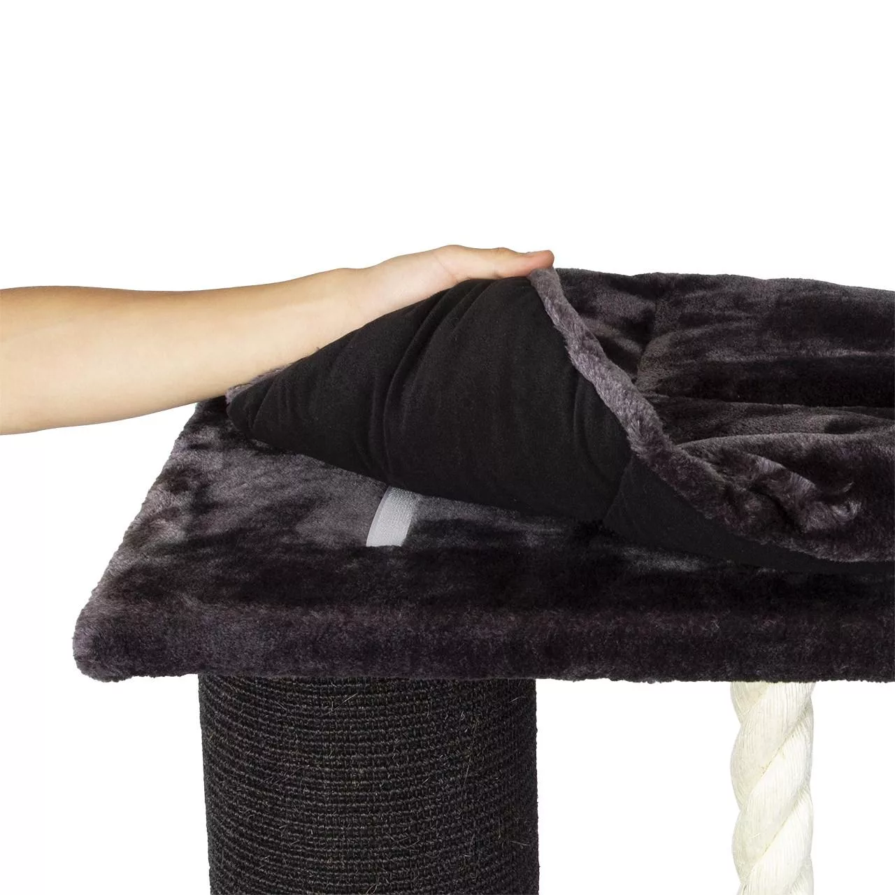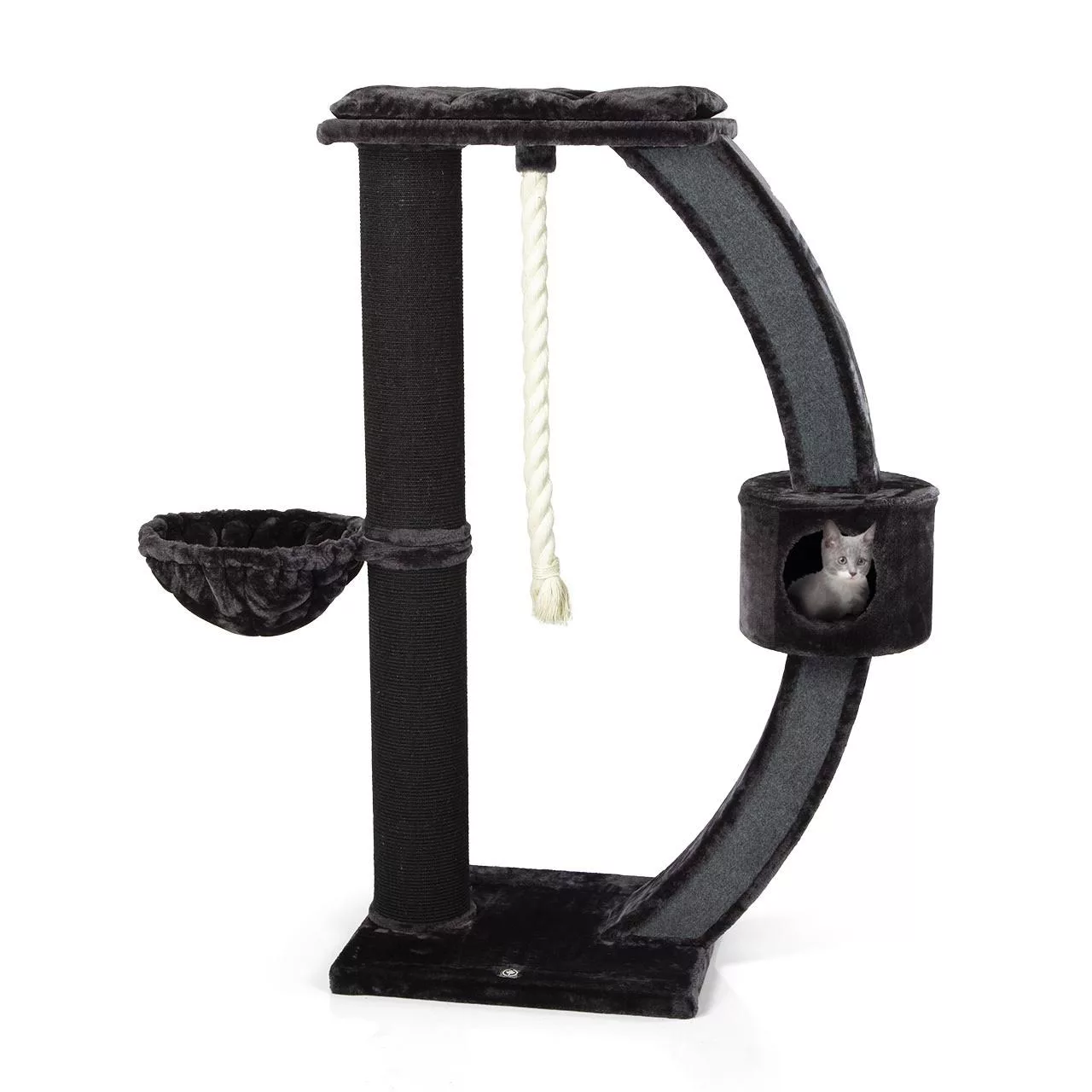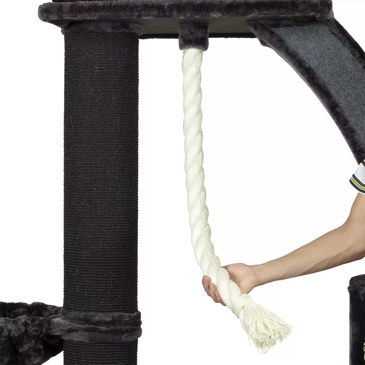 The large hammock can be accessed easily from your feline and can be rotated around the post so that you cat has easy access to the dangling rope which will provide some added entertainment for your feisty feline!