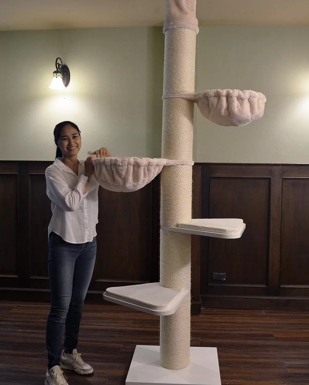 All the cats love this one and so does the dog! It looks amazing and is so sturdy. We didn’t need the extender to reach the ceiling but if we did, I think we could add another foot to it! It looks great, is super thick and complements the home rather than looking like an elephant in a garden pond. We love it!