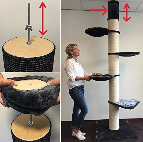 This cat tree is huge! My ceiling was slightly higher than the specifications listed. However, Jon was very accommodating in providing extra long poles to make it fit. First class cat tree and first class service!