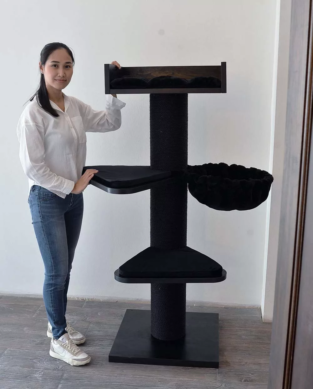 The Royal Coon Cat Tree Plus (Blackline) is more than suitable to accommodate up to 4 feline friends at the time, and can withstand an impressive 23 kg of weight! So don’t panic if your feline friend eats too much fish for dinner!