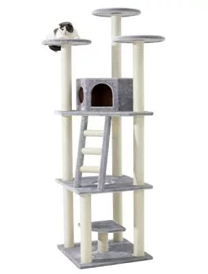 The dark grey plush is of very high quality and a just under 2 meters tall, this cat tree provides majestic views of the surrounding area so you cat can watch your every move!