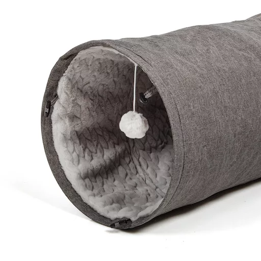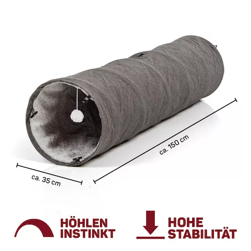 With its plush and fluffy interior, your beloved house tiger will experience unparalleled comfort and warmth. Meanwhile, the exterior boasts a robust linen-look material, ensuring durability and long-lasting enjoyment. Whether your cat seeks relaxation or desires to unleash their playful instinct, our cat tunnel accommodates both needs perfectly.