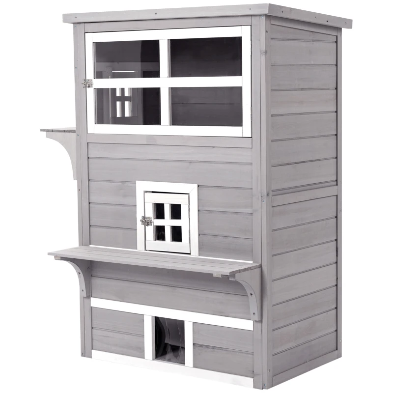 Your cat will delight in the adventures offered by Catnap Kingdom outdoor shelter, specifically designed for feral cats. This haven provides a cozy and safe space for your cat, protecting them from harsh sunlight or light rain. Equipped with an escape hatch, jumping platforms, and windows, it ensures your cat can keep an eye on the outside world. Versatile in its placement, this cat house can be set up outdoors or indoors, thanks to its asphalt eave that prevents water damage to the base. Offer your cat a slice of comfort with this outdoor catio shelter, a true home away from home.