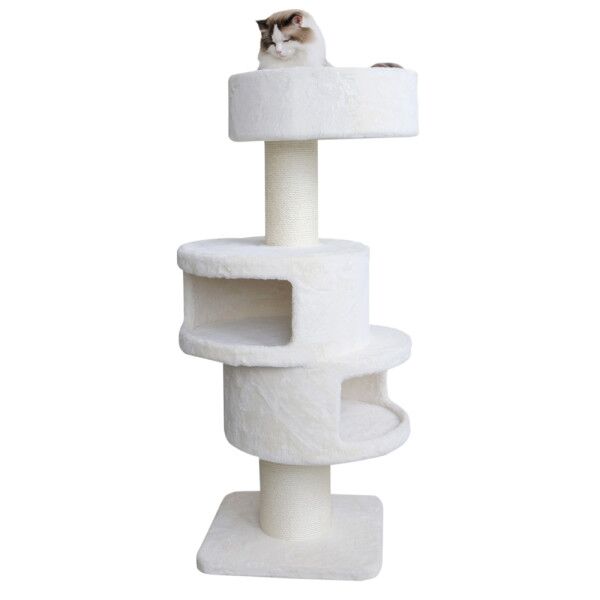 The trunk of the “Chic Volta Cat Tree” is meticulously wrapped in high-quality sisal, providing an ideal surface for scratching and ensuring your cat’s claws stay healthy and sharp. Not only does it cater to your pet’s natural instincts, but it also integrates seamlessly into any home decor, adding a touch of elegance to your living space.