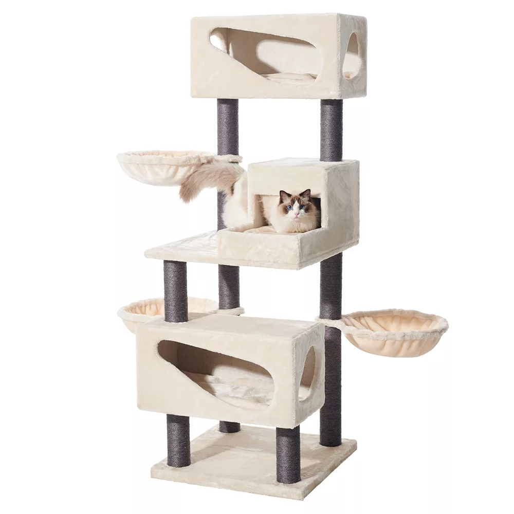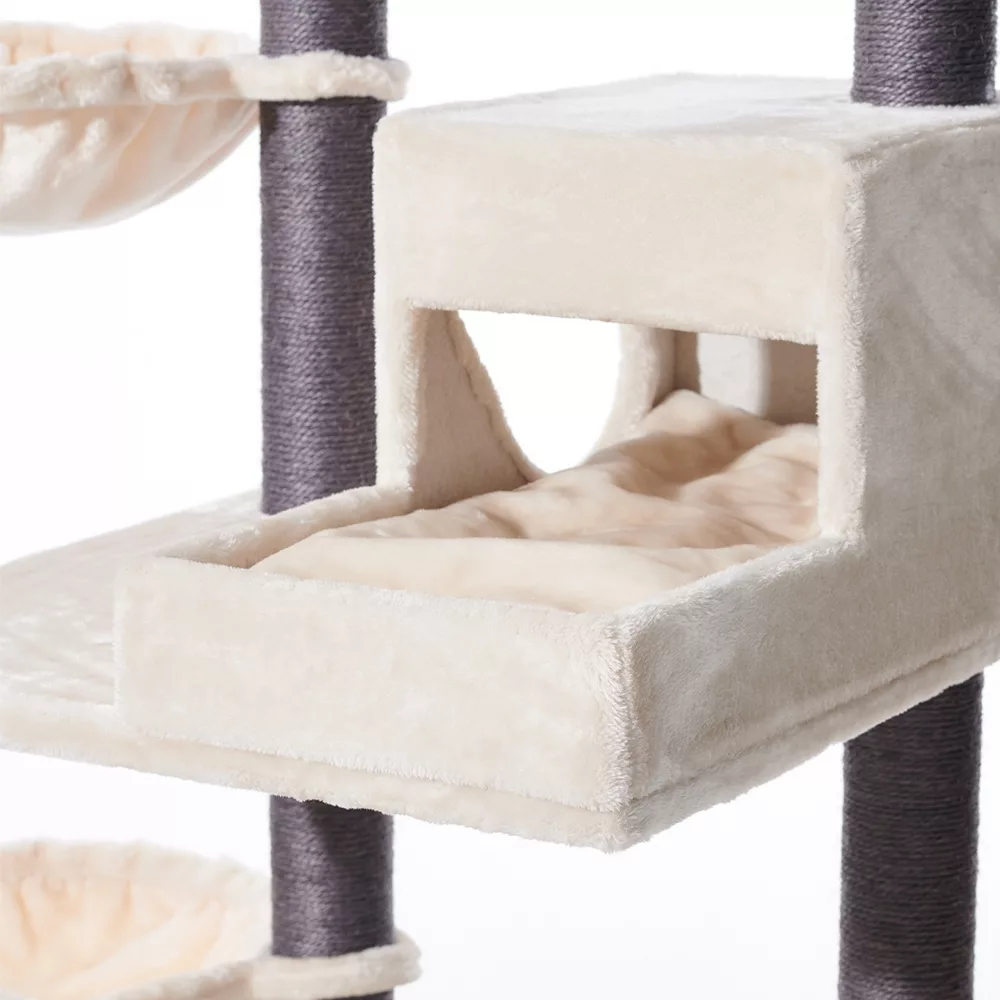 In addition to its functional attributes, the “Corlu” cat tree boasts an elegant cream color that effortlessly blends with any interior decor. Its sophisticated aesthetics make it not only a practical addition to your home but also a stylish accessory that enhances the overall ambiance of your living space.