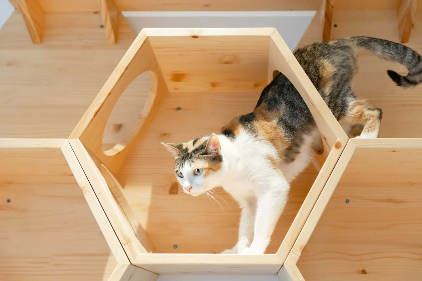 With an additional cover or chair plate, Busycat has multiple uses and can be transformed into an enclosure cat shelf or a hexagon chair that allows them to hide and run to their hearts content!