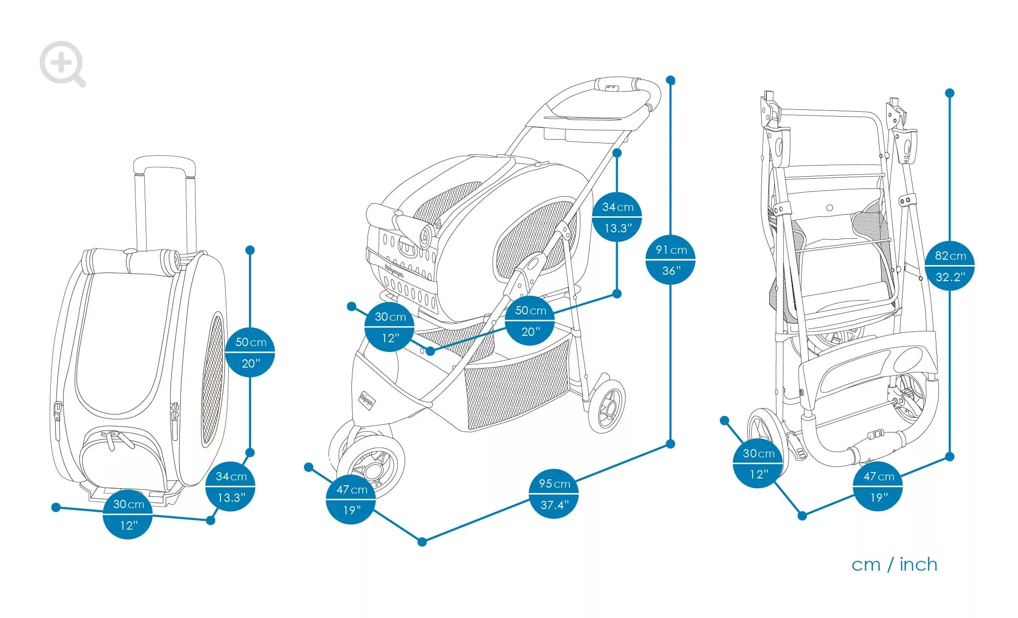 Stroller Dimensions: L91 W95 H47 (cm); L36 W37.4 H19 (in)