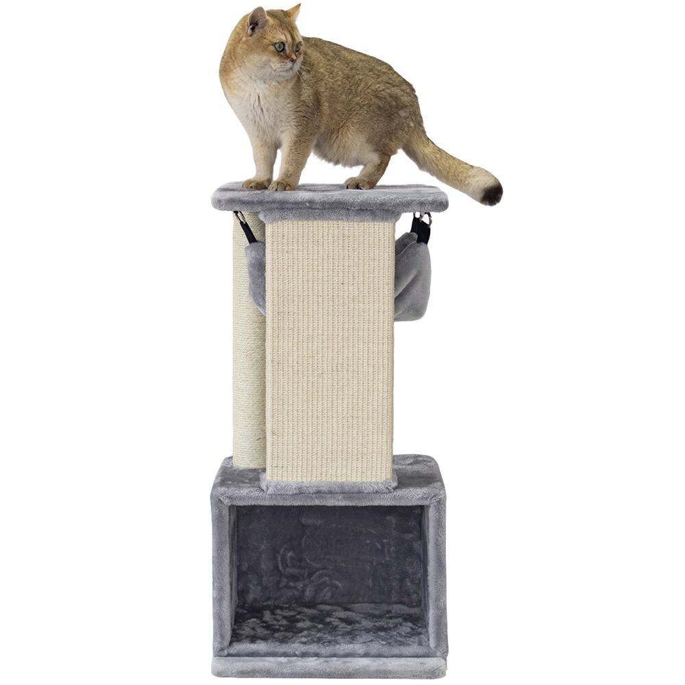 Equipped with a robust sisal-covered scratching post, measuring 9 cm in diameter, this scratcher allows your cat to sharpen its claws and stretch its muscles. The square base area of 40 x 40 cm and a height of 84 cm provide ample space for climbing, hiding, and lounging.
