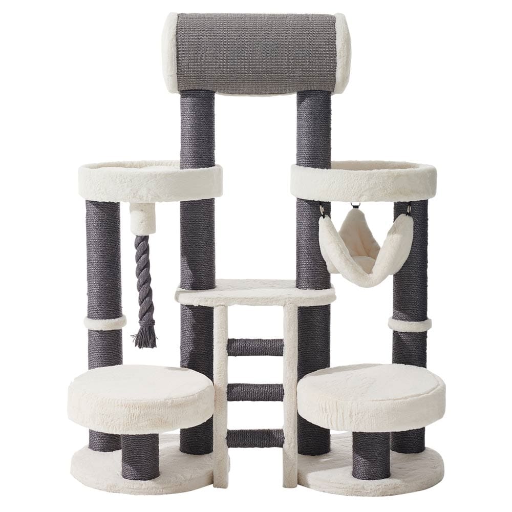 In addition to the scratching trunks, the “Kenna” cat tree also features a cozy cave that lies between two of the sisal trunks. This cave offers your cat a private and secure place to retreat and relax, which is especially important for shy or nervous cats.