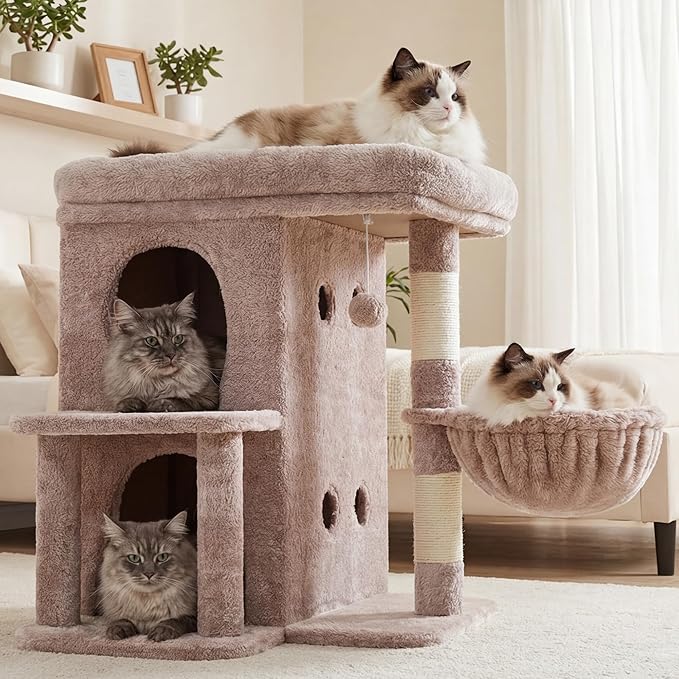 The main benefit to this cat tree is the sisal covered scratching posts and roof-top where they can get their claws going and give them a good sharpen! We should warn you though that sharp claws are not ideal when they decide to nuzzle into your lap. So, we apologise in advance…