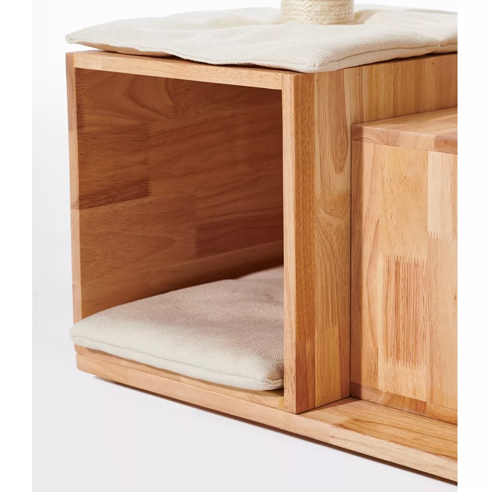 Embark on an extraordinary adventure with the one-of-a-kind “Ligno” Cat Tree—an unparalleled play experience crafted exclusively for your feline companion. This exceptional cat tree, crafted from high-quality rubber tree wood, transcends the ordinary, offering not only stability and durability but also serving as a striking piece of furniture that elevates your home decor.