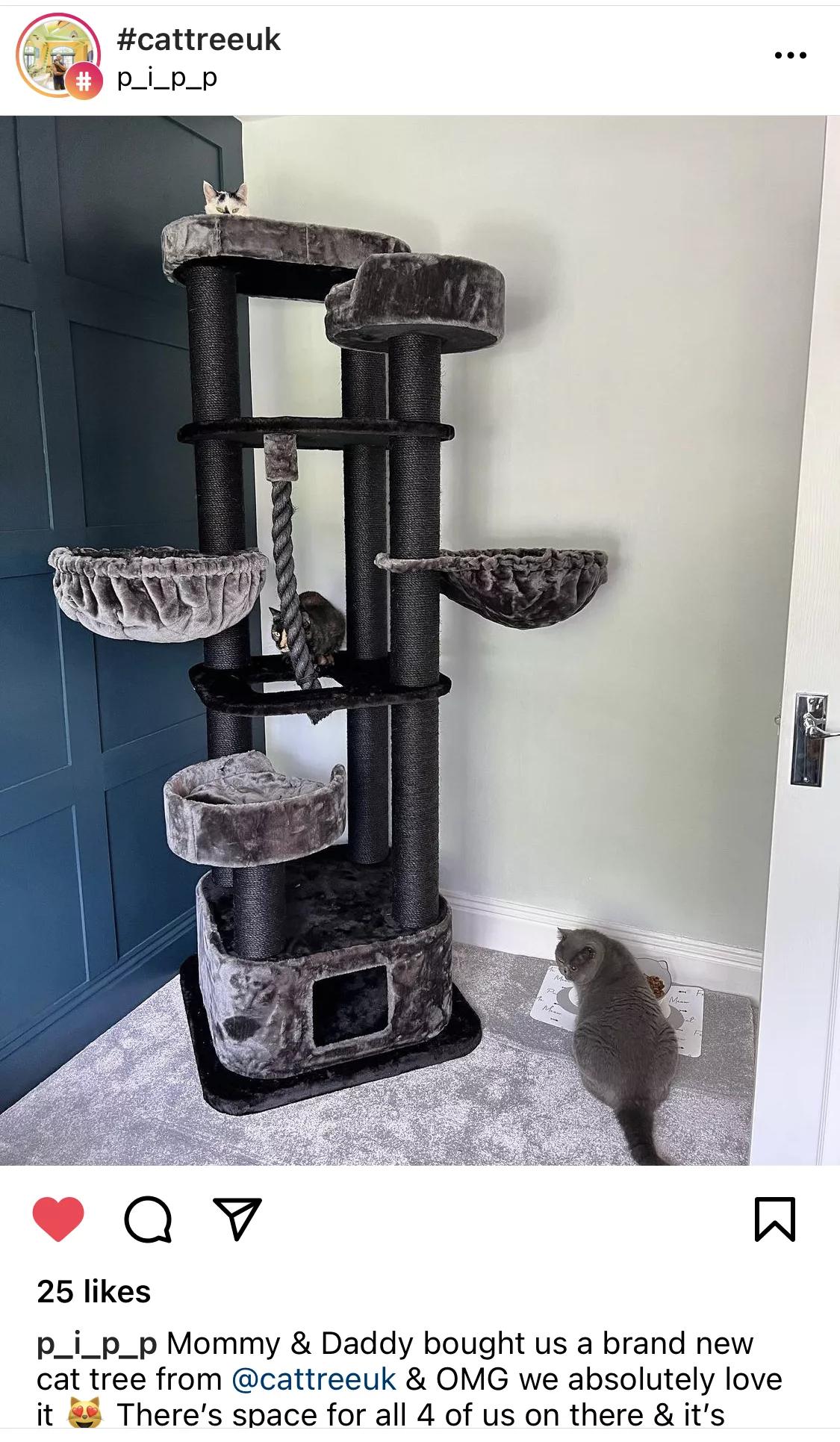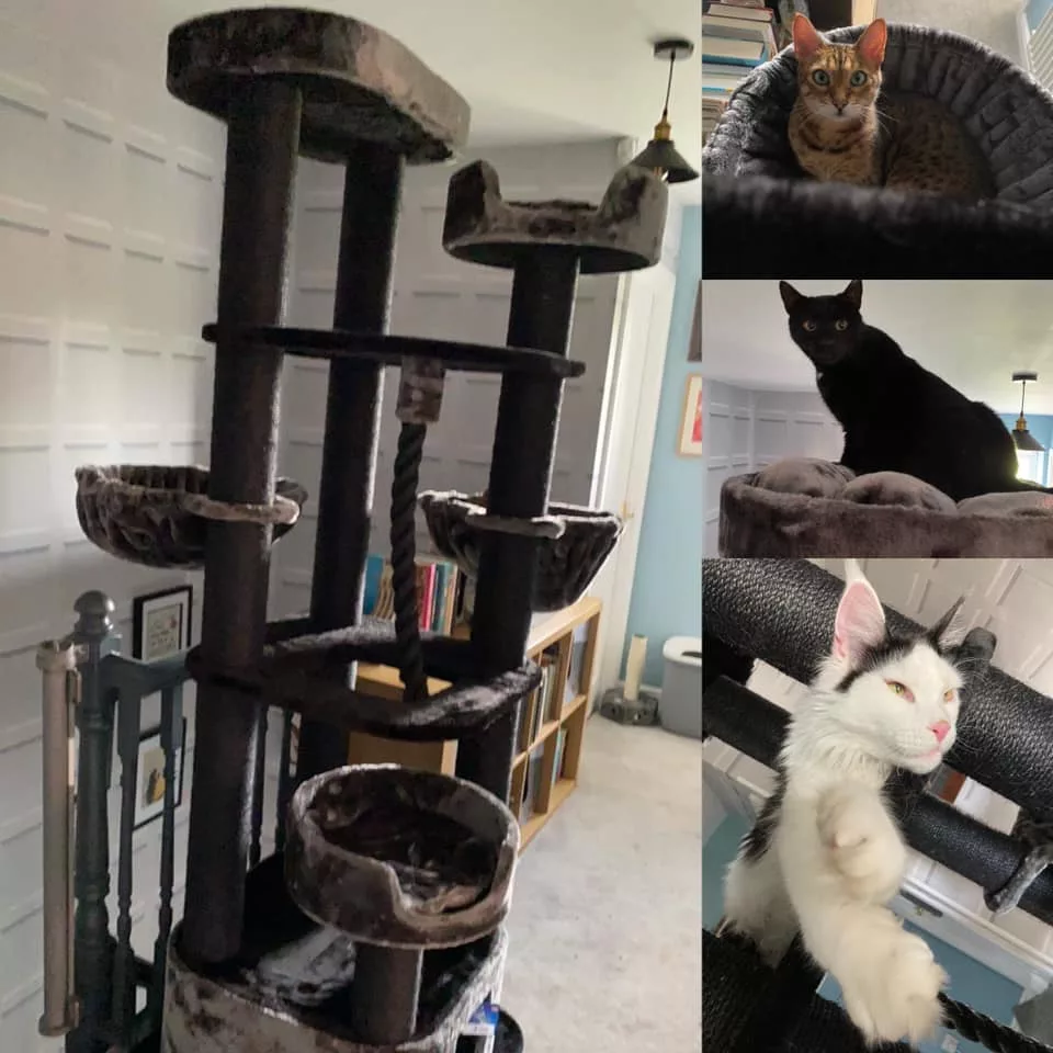It is incredibly sturdy, it doesn’t so much as wobble when either or both cats are jumping about on it. The fabric is well made and attached, it is also very soft. Our adult cat was rubbing herself all over the material before we had even finished unpacking. Both cat and kitten like the bed spaces and there is never a point when at least one of them isn’t in the tree. Our adult didn’t like hammocks on previous trees, which we now suspect was due to them being unstable under her weight, she bounces in and out of the ones on this tree with no qualms.
