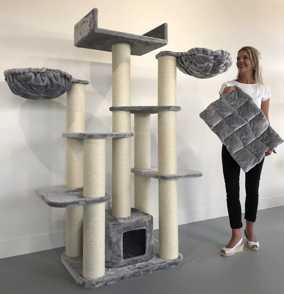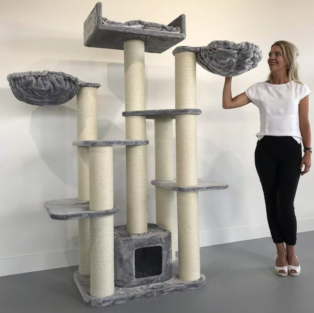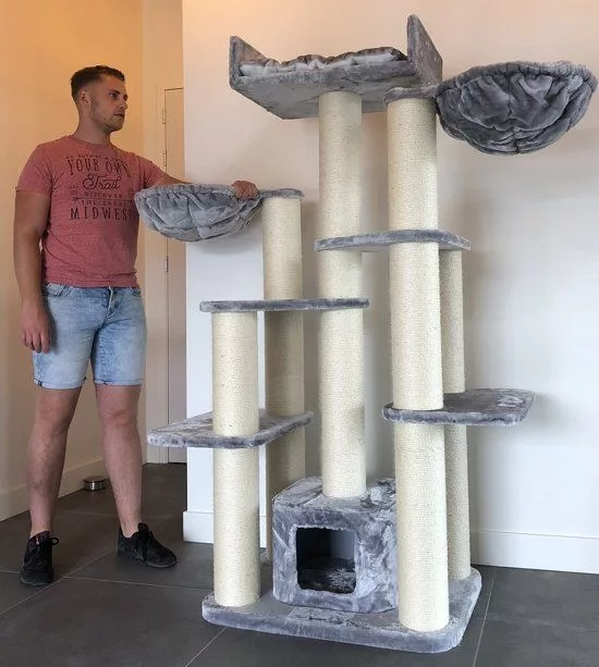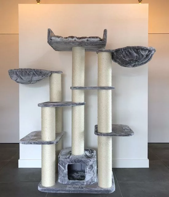 At 183 cm tall, this truly is a large cat tree that does require some space! If you are fortunate enough to be able to provide enough room to install this stunning and extremely robust piece of cat furniture, the no other product on the market will be able to provide a scratching and playing experience quite like the Maine Coon Fantasy Cat Tree (Light Grey)..