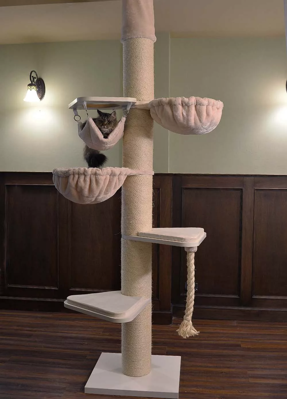 The MAINE COON TOWER Cream CROWN (Deluxe) is a huge scratching floor to ceiling cat tree for your feline friend to climb, explore and play!