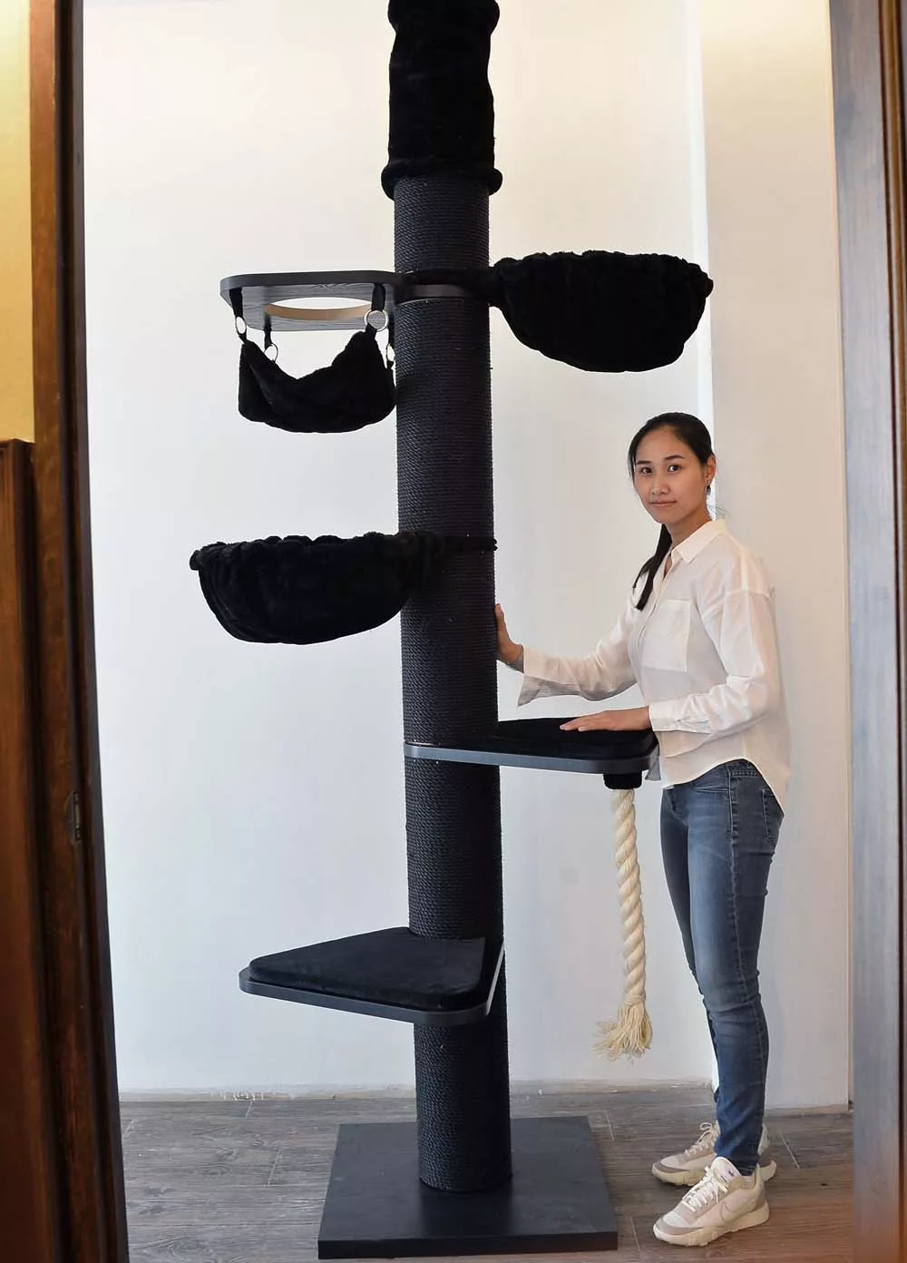 Make no mistake, scratching cat trees do not get any bigger or better or more imposing than this and you can be assured that all eyes will be on the Maine Coon Cat Tree Tower BLACKLINE crown wherever it is placed within your home.