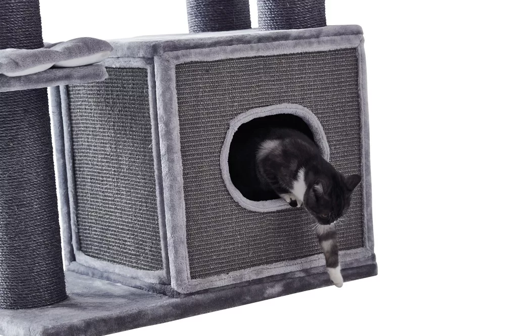 One feature which is guaranteed to appeal to your feline is the ground level spacious scratching box which has the exterior covered in sisal carpet, whilst the interior provides a spa like retreat where your cat can kick back and relax.
