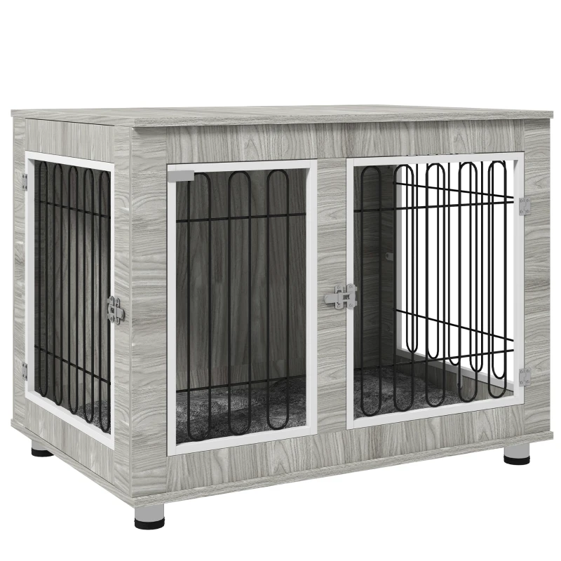 Crafted to combine comfort with contemporary design, this PawHut indoor kennel features a robust frame made from particleboard with reinforced steel mesh panels, and comes with a plush, removable, and washable cushion for cozy, hygienic rest. Its generous dimensions—approximately 106 cm wide, 74 cm deep, and 81.5 cm tall—make it an ideal choice for large dogs up to around 35 kg and 65 cm in body length. The dual-door system (featuring front and side access) is secured with reliable latches for easy entry and safe containment, while adjustable feet ensure stability on uneven floors. The wide, sturdy top also doubles as a functional side or end table, offering both style and utility, perfectly blending pet comfort with home décor.