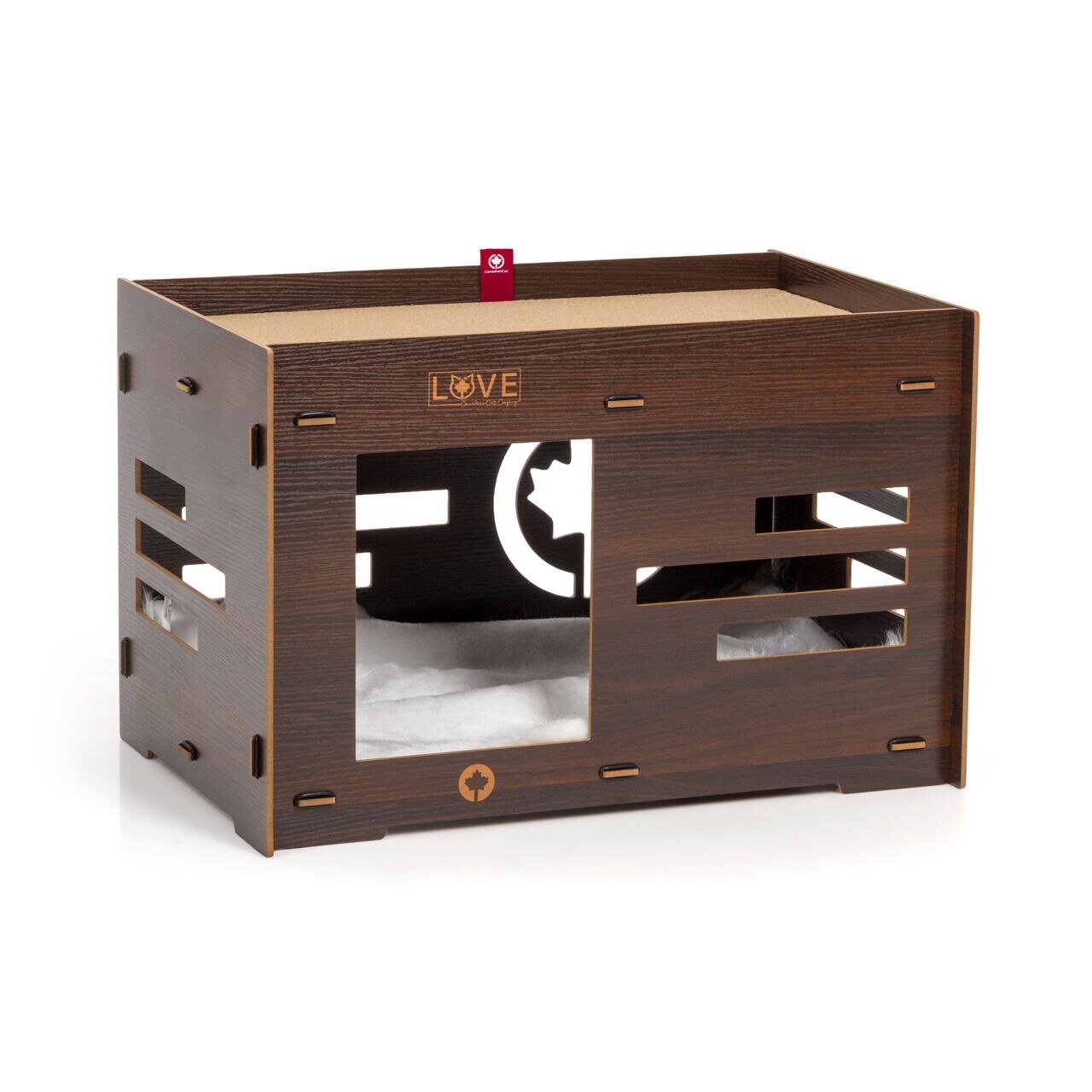 Constructed from solid MDF, the Petitot is built to last, providing a stable and durable sanctuary for your cat. The wood-like appearance of the cat house offers a natural and inviting warmth, seamlessly blending with any home decor. The reversible pillow features two inviting textures: a soft faux fur on one side and a snug faux lambskin on the other, catering to your cat’s comfort preferences throughout the seasons.