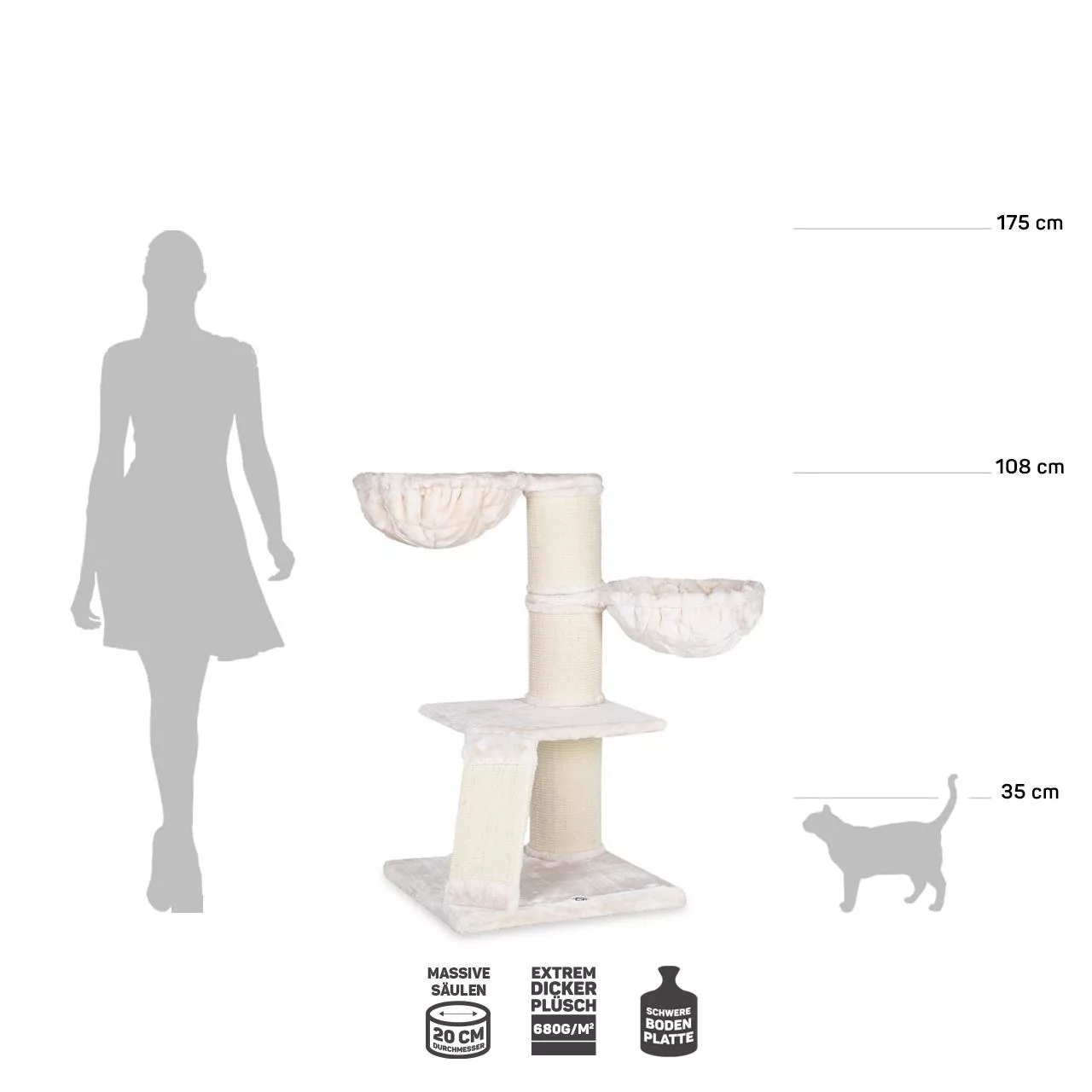 The thick and chunky 20cm posts have been finished in lovely sisal carpet which is a much better solution for your cats scratching needs than your own expensive new carpet which you try and keep intact ..