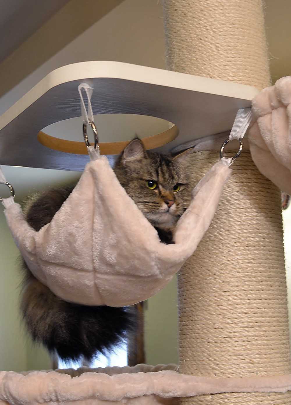 The hammock itself has been carefully hand stitched with a beautiful quilted effect and strong, sturdy rings that attach it to the underside of the plate can support weights of up to 21kg, so no matter how strong your cat is, they will always have a special place to go.