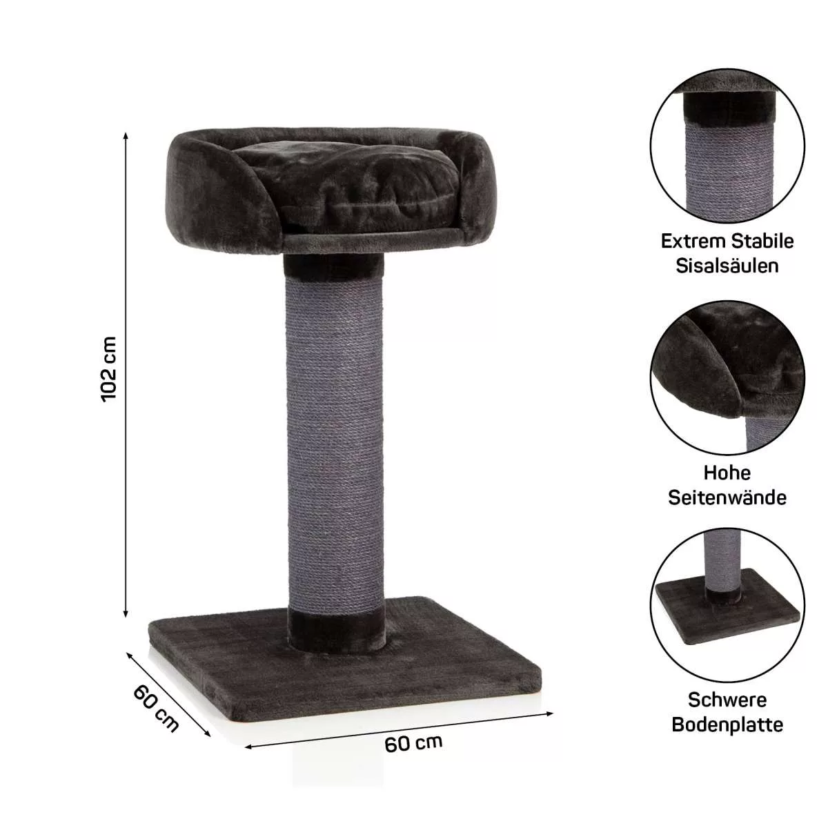 Dimensions: Solid base plate 60 x 60 x 4 cm Total width approx. 60 cm Total height approx. 102 cm Size of the lying surface: Ø 60 x 18 cm Weight: approx. 18kg