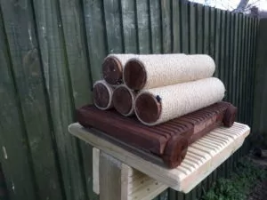 The scratch pole carriage is a flat bed carriage with 5 of our solid wood roped poles!