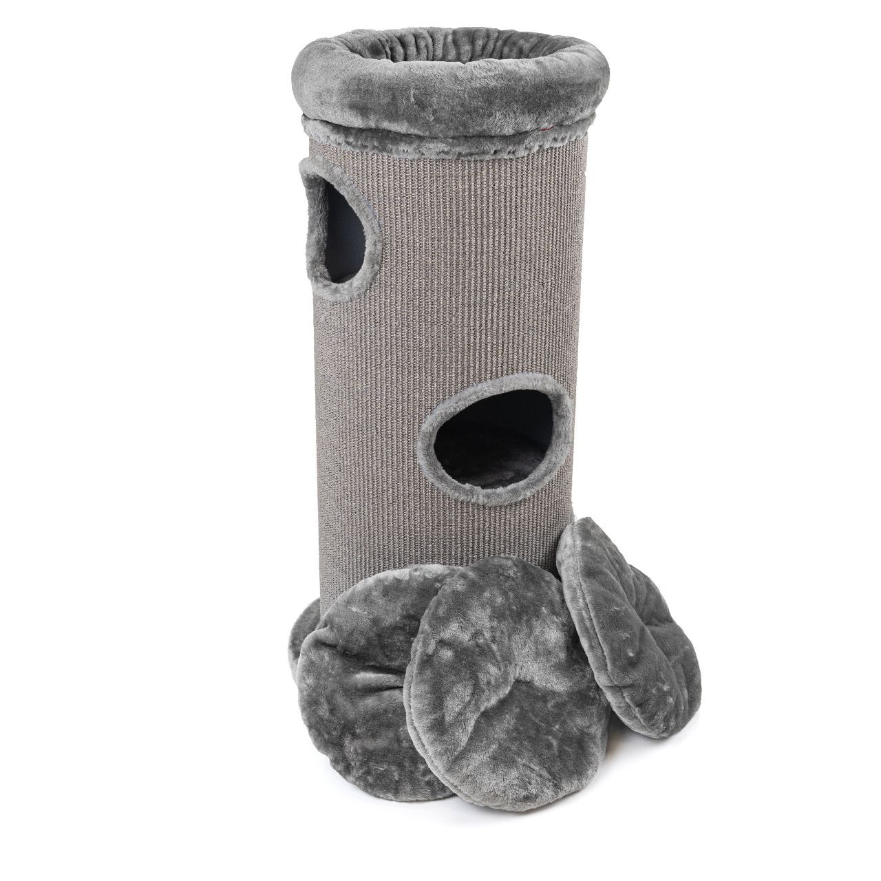Equipped with three cosy caves, each measuring around 30 cm in height, Olivia offers plenty of space for resting, hiding, or simply enjoying some quiet time. Every cave comes with a soft, cushioned pad for extra comfort, making it a perfect retreat for naps or relaxation. Oval-shaped entrances make access easy while adding a modern touch to the tower’s design.