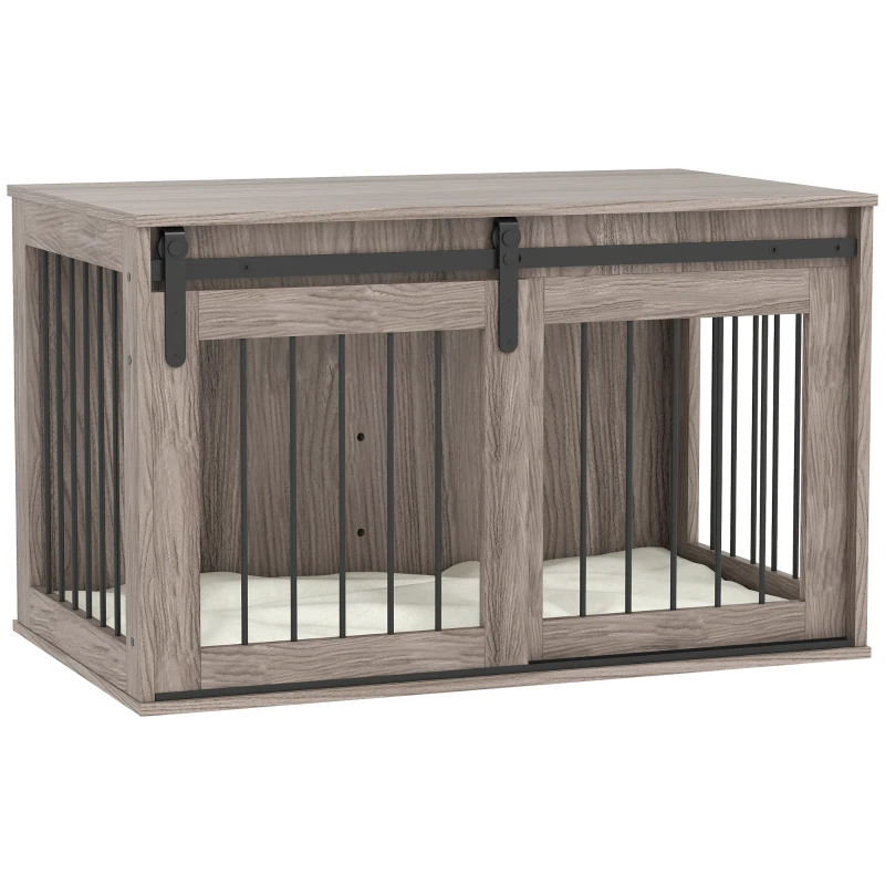 This versatile PawHut piece is designed to function both as a secure dog crate and stylish furniture with a warm brown finish, blending particleboard construction and steel wire panels for durability and visibility. Thoughtfully crafted with practicality in mind, it includes a plush, washable removable cushion to offer comfort and easy cleaning. With overall dimensions of approximately 100 cm in length, 60 cm in width, and 63 cm in height, it offers a roomy yet compact space suitable for large-sized dogs up to around 50 cm at the shoulder. A spacious sliding door equipped with a secure latch ensures convenient access, while the top surface supports essential decor or accessories. Elevating both your home décor and your pet’s comfort, this crate combines practicality, cozy design, and sturdy construction in one elegant solution.