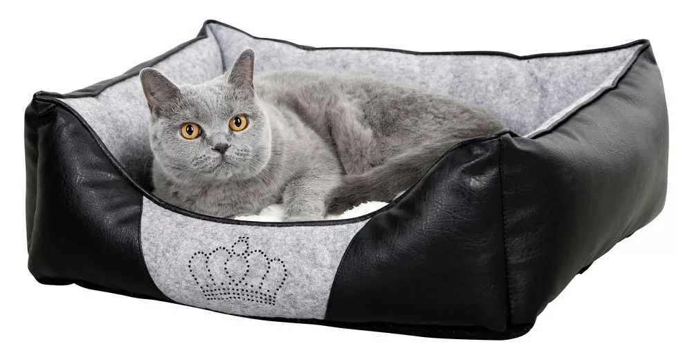 The stylish combination of light grey and phone leather matches perfectly together and emblazoned on the front is a stunning crown which is set with rhinestones which is perfect for your cat who will inevitably be the king or queen of your household..