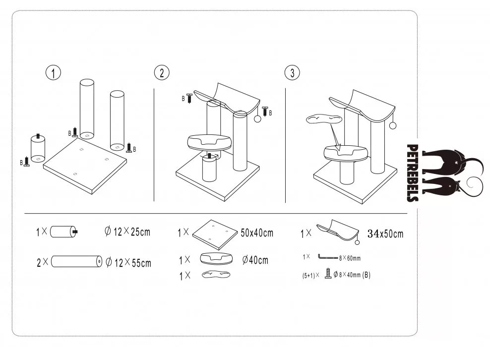 There are three high quality and robust scratching posts (12cm diameter) where your kitty can maintain their claws and keep them nice and sharp.
