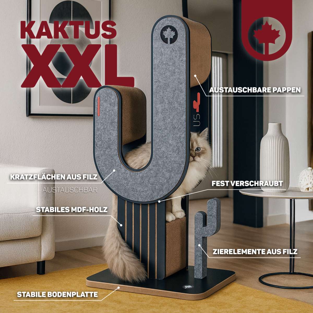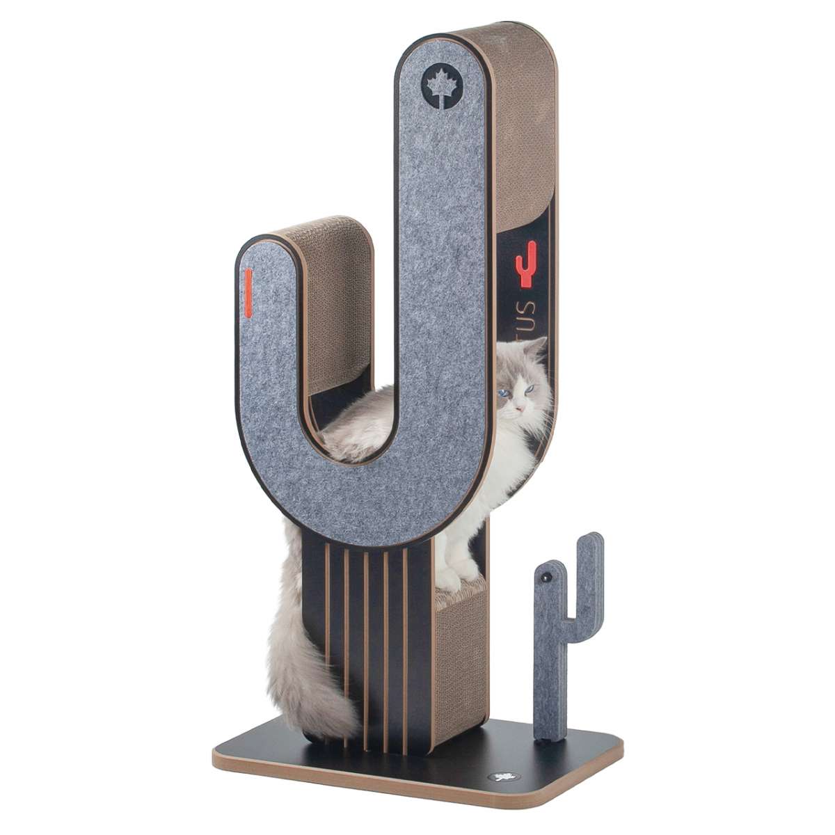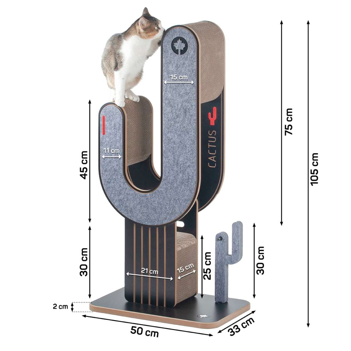 Built with durable materials, this cat tree features a sturdy frame clad in soft felt and complemented by strategically placed corrugated cardboard scratching zones. The felt finish provides a sleek, modern look, while the textured cardboard panels offer an ideal surface for scratching—helping preserve your furniture and support healthy claws. The cactus “arms” provide multiple angles for cats to engage, stretch, and climb.