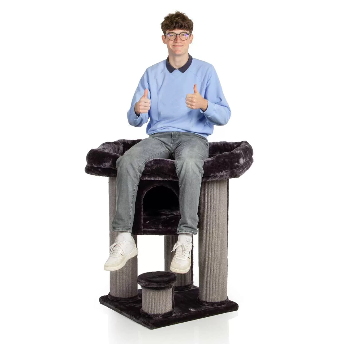 This large cat tree is characterised by its extreme stability due to the extremely thick sisal column with 15 cm Ø. This is some of the largest you can find.