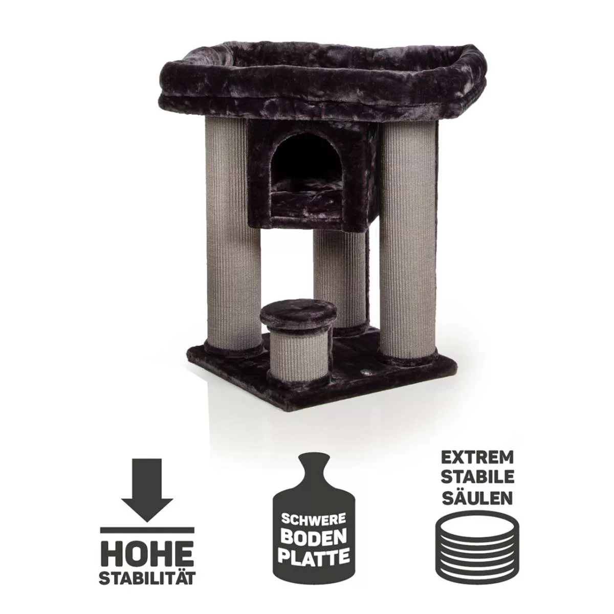 The heavy base plate and the massive sisal trunks give the scratching post an extremely high level of stability. This makes it particularly suitable for particularly large and heavy cat breeds.