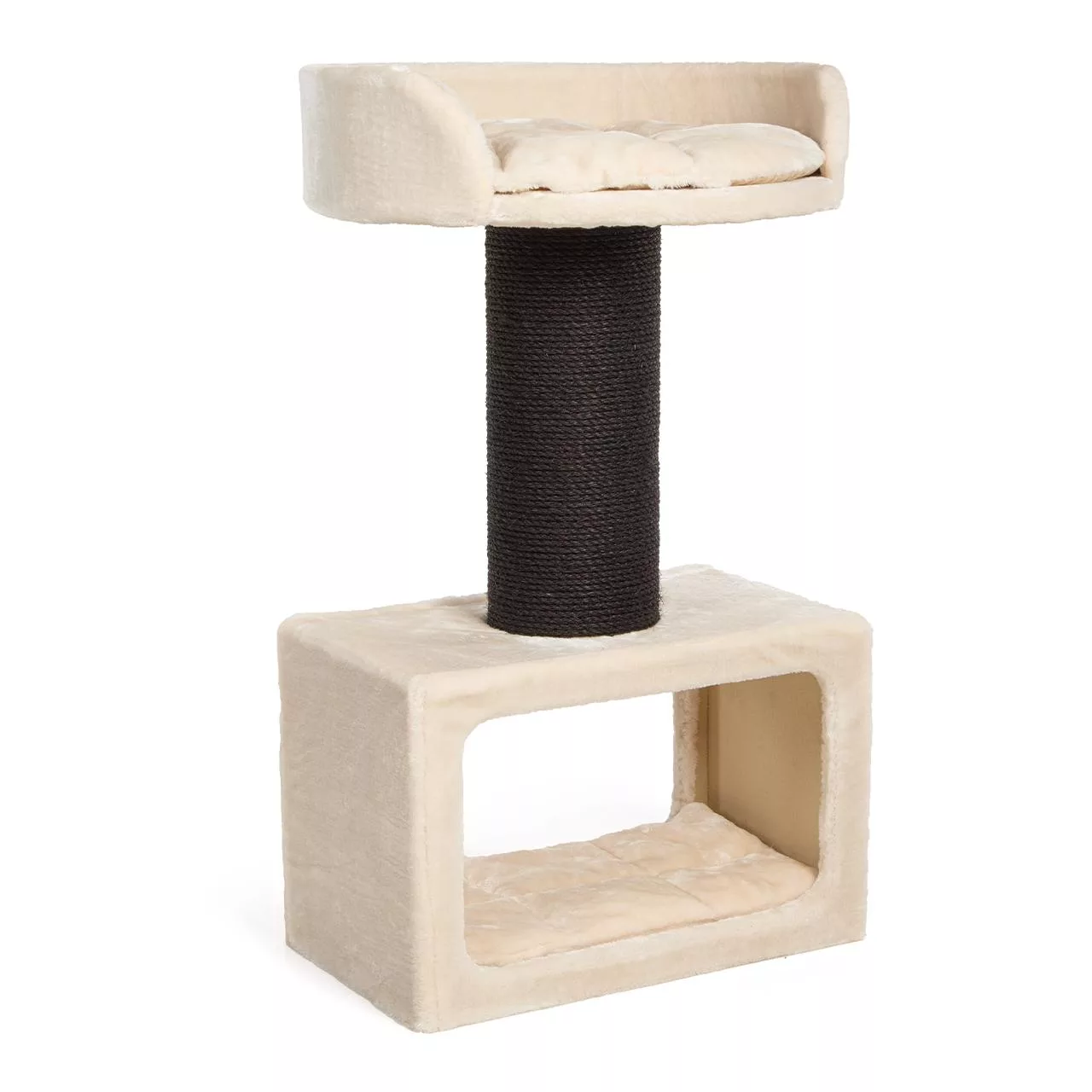 The downstairs open sided cat cave comes with a soft removable cushion as does the top level platform which will provide a nice view of the surrounding area.
