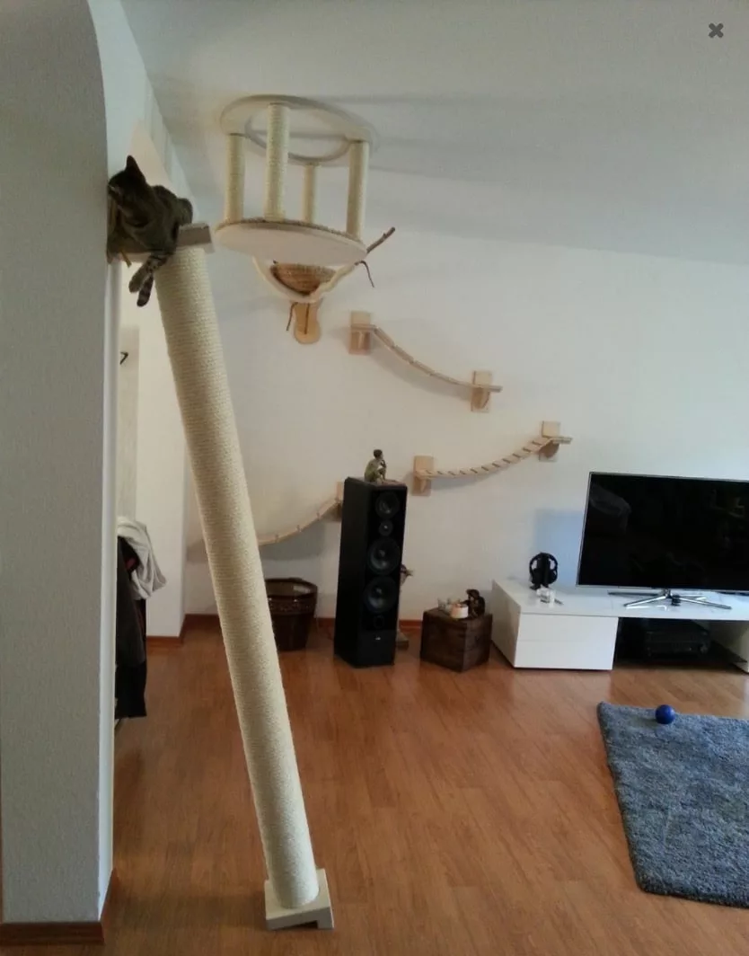 The approximate space requirement of the cat post (short) is: 20 cm wide, 63 cm deep (on the floor), 175 cm high.