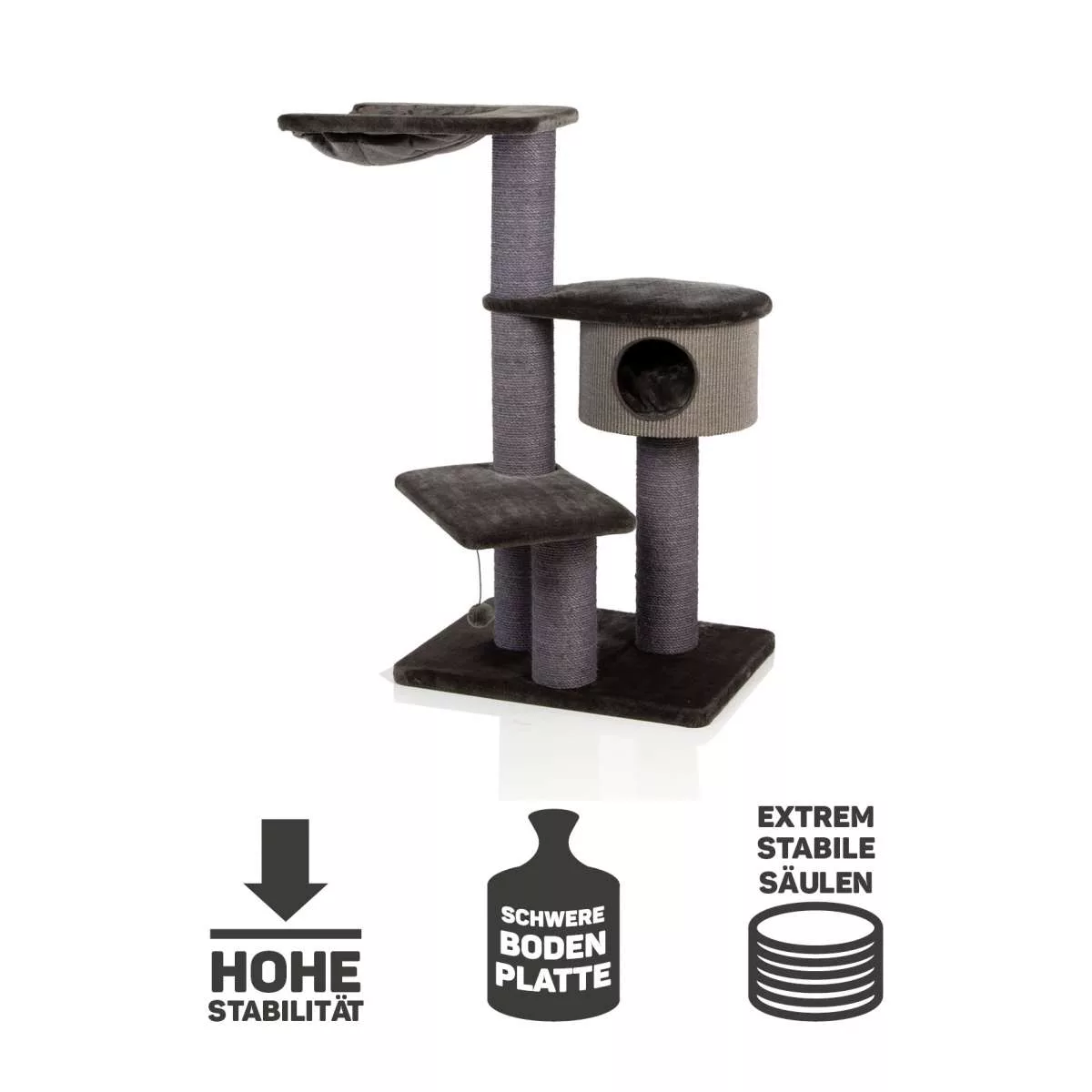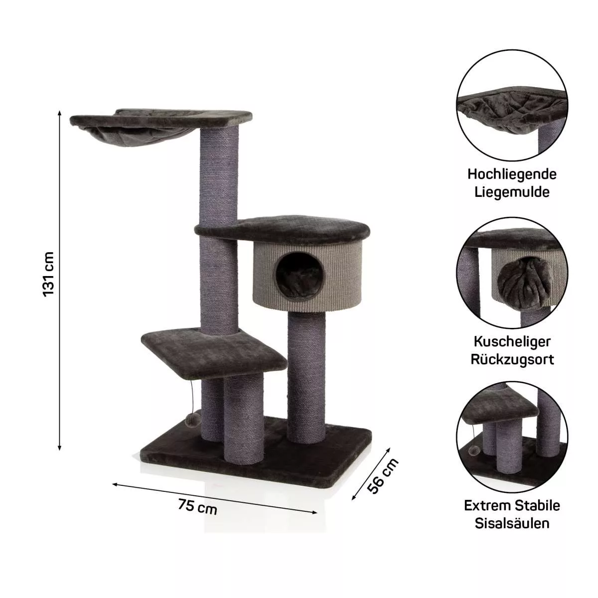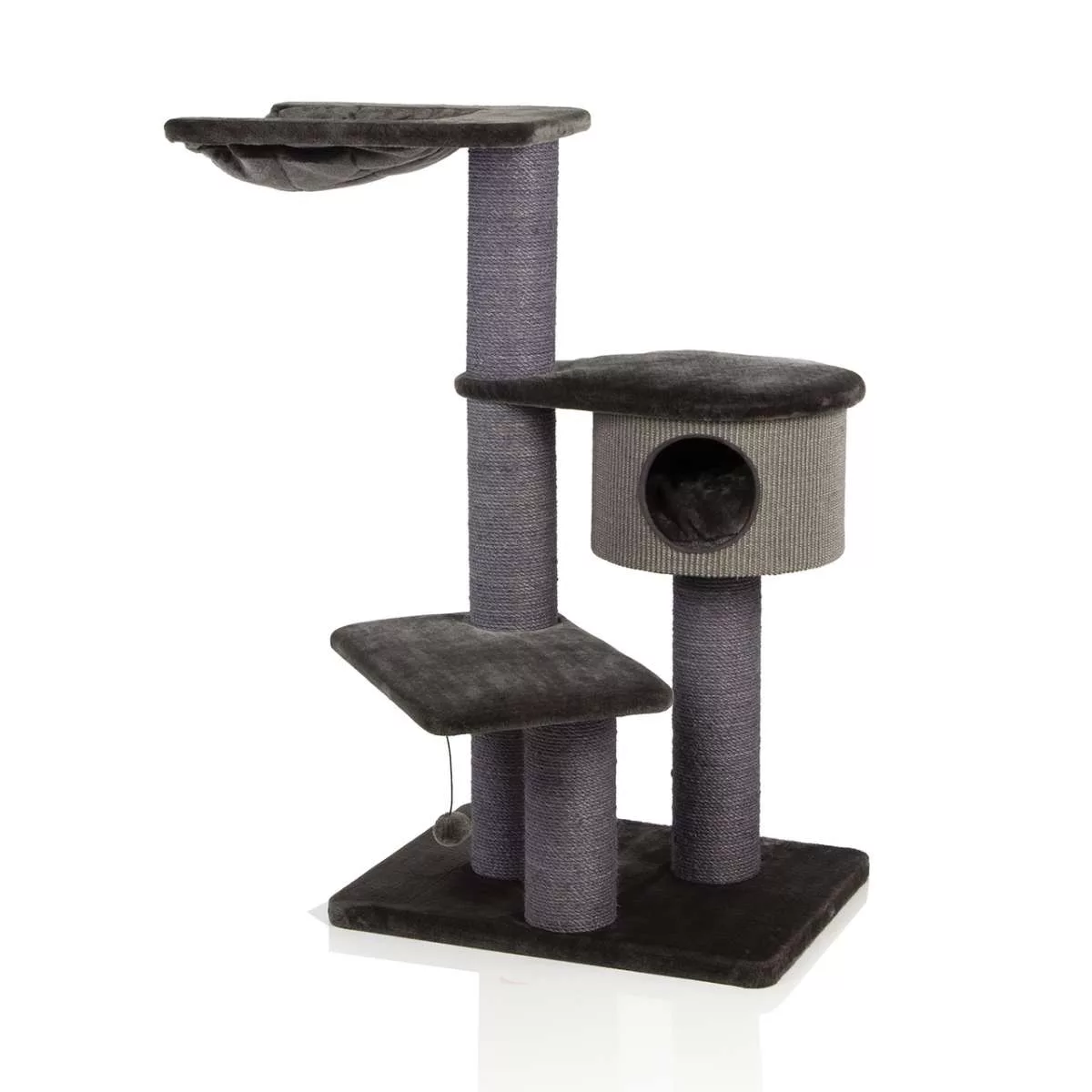 This robust cat tree has been made using the very best quality materials and the chunky sisal columns which have been finished in naturally dyed black sisal rope making it very strong and suitable for cats of all shapes and sizes.