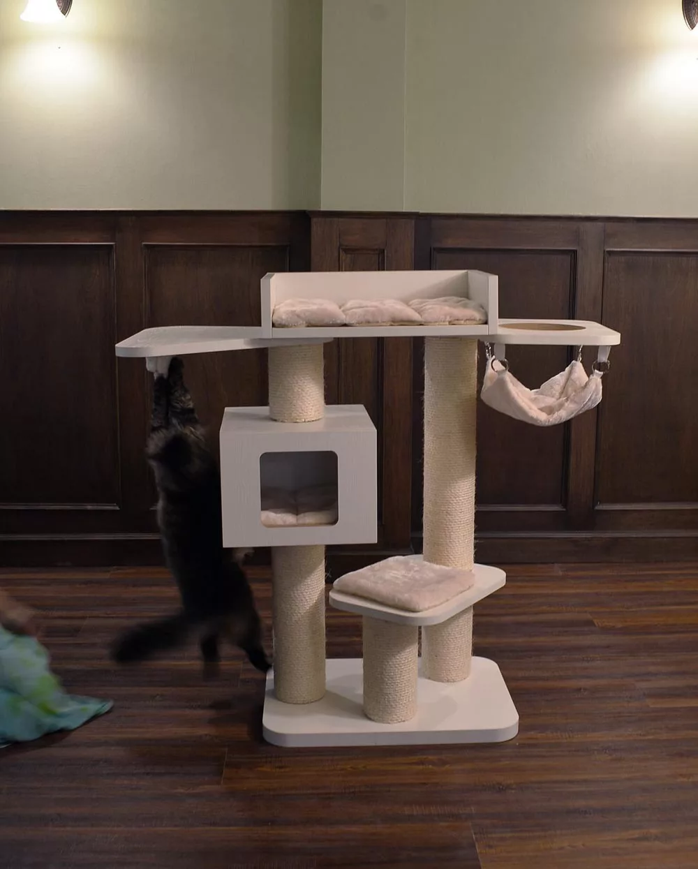 The unique benefit of this cat tree is that it is easy to clean, entirely scratch proof, waterproof and more!