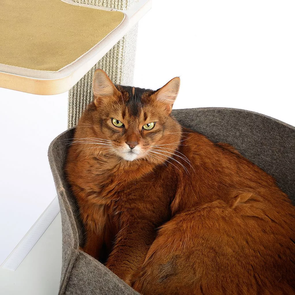 Each of these marvellous cat beds have been handmade by expert craftsmen in Germany and can be placed on their own. Or, can be accompanied on a platform within a cat tree to give them an extra layer of comfort whilst they snooze..