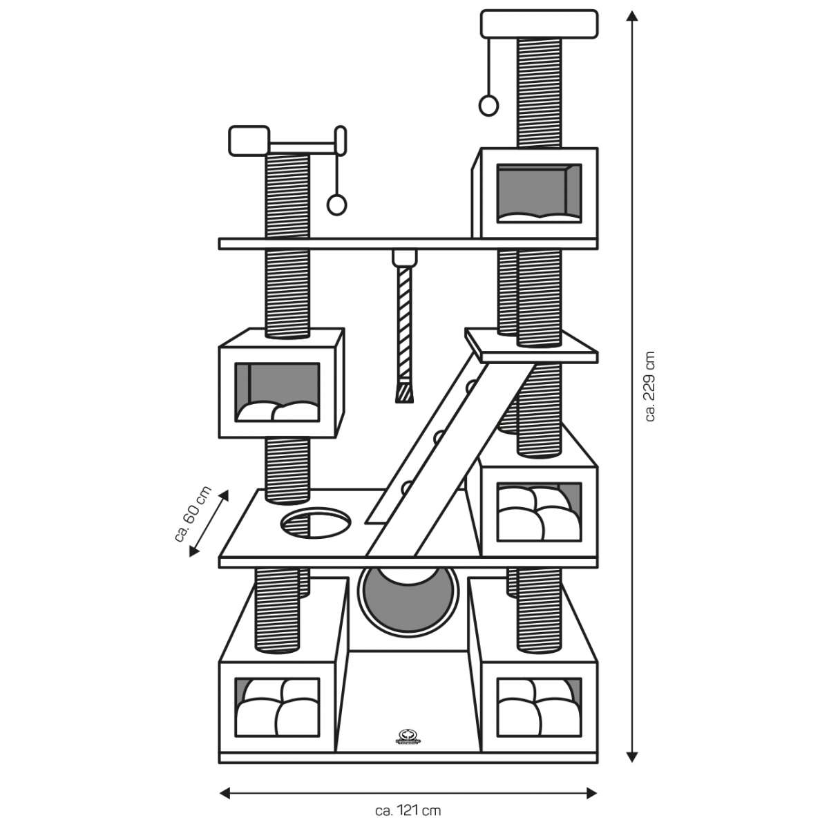 Elevate your cats’ playtime and relaxation with the XXL Logan Cat Tree. Standing at an impressive height of 229 cm, this extraordinary cat tree is the perfect haven for your beloved pets, offering endless climbing adventures and cozy retreats tailored to their needs.