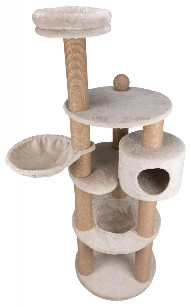 Not only is it very strong and sturdy, but it is also styled beautifully in a very light grey 600GSM plush material and natural jute sisal rope scratching posts.