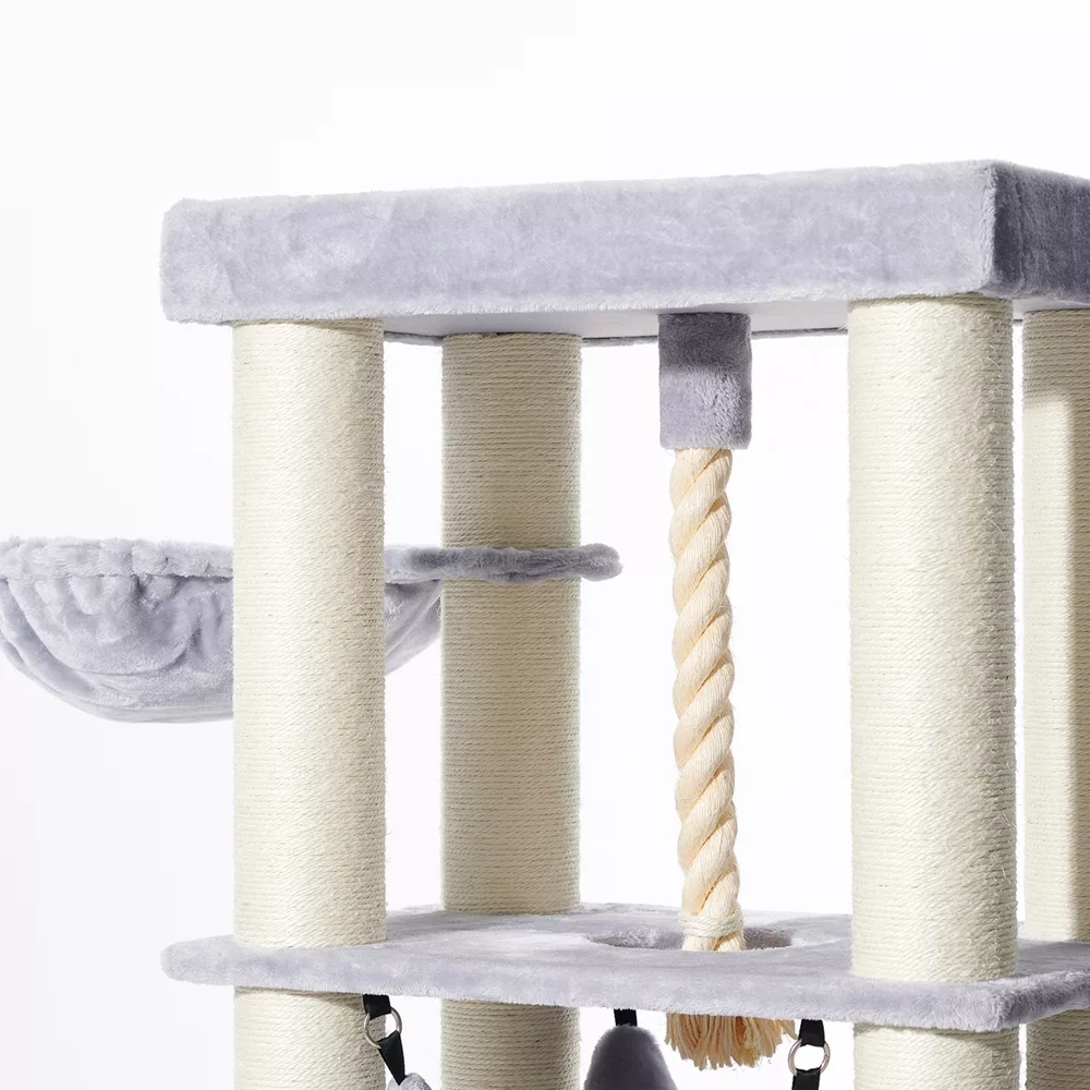 With its elegant light grey color, the “Ordu” Cat Tree seamlessly blends into any home decor. It’s not just furniture—it’s a stylish accessory that adds a touch of modern elegance to your living space.