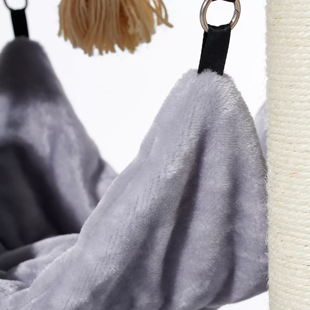 But that’s not all—the “Ordu” Cat Tree goes the extra mile. It comes with a cozy hammock, comfortable hollows, and cushions, offering your cat a tranquil place to unwind and recharge. Watch as they curl up in contentment, finding pure bliss in their own little sanctuary.