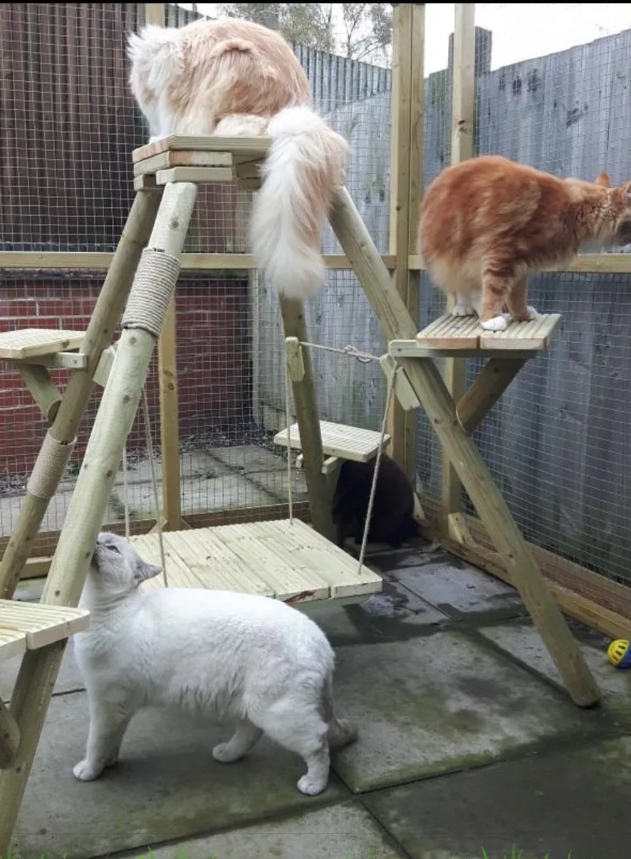 You can be sure that your feline friend will show the same admiration for this stunning outdoor cat play centre as well.
