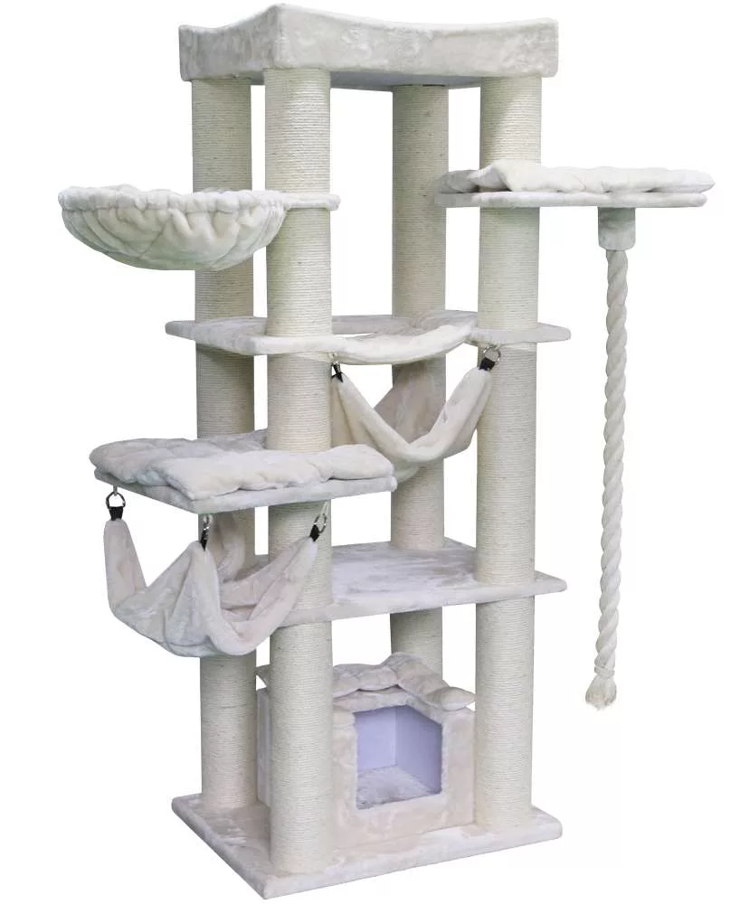 There are two different style hammocks which have been neatly incorporated into this design which you cats will love.