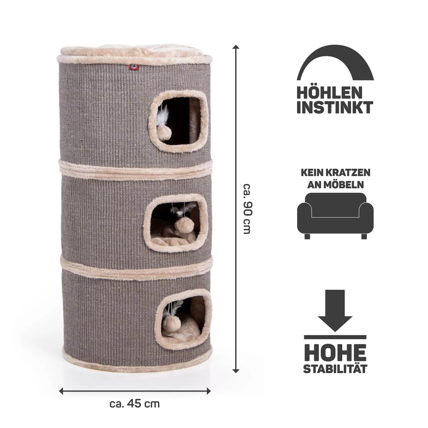 Immerse your cats in a world of coziness with the three spacious cat caves nestled within The Simba XXL Barrel. These individual retreats, each measuring approximately 45 x 45 x 29 cm, provide ample space for your beloved feline to curl up and enjoy a peaceful nap. Furnished with plush cushions, these cat caves offer the ultimate in relaxation and tranquility.