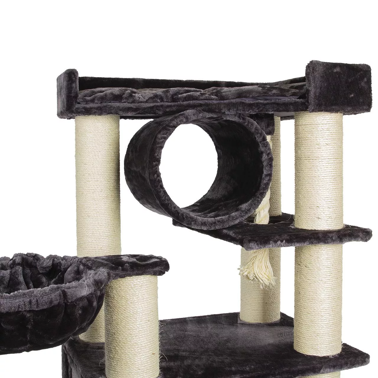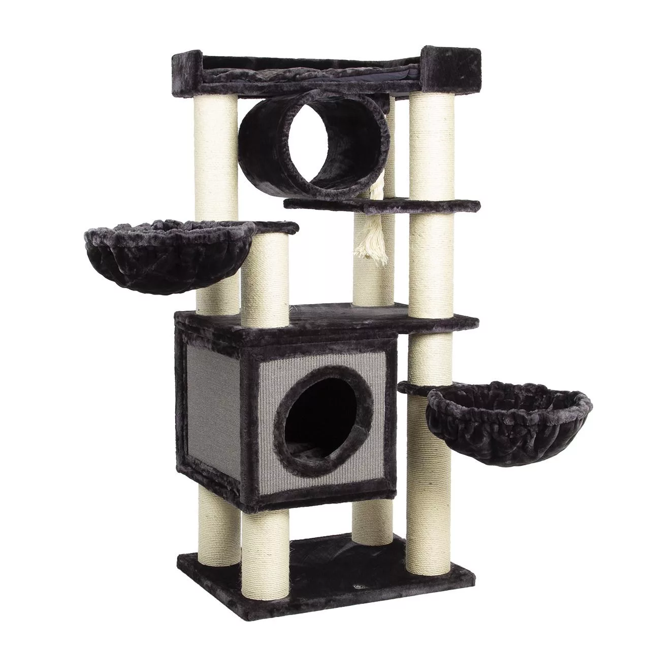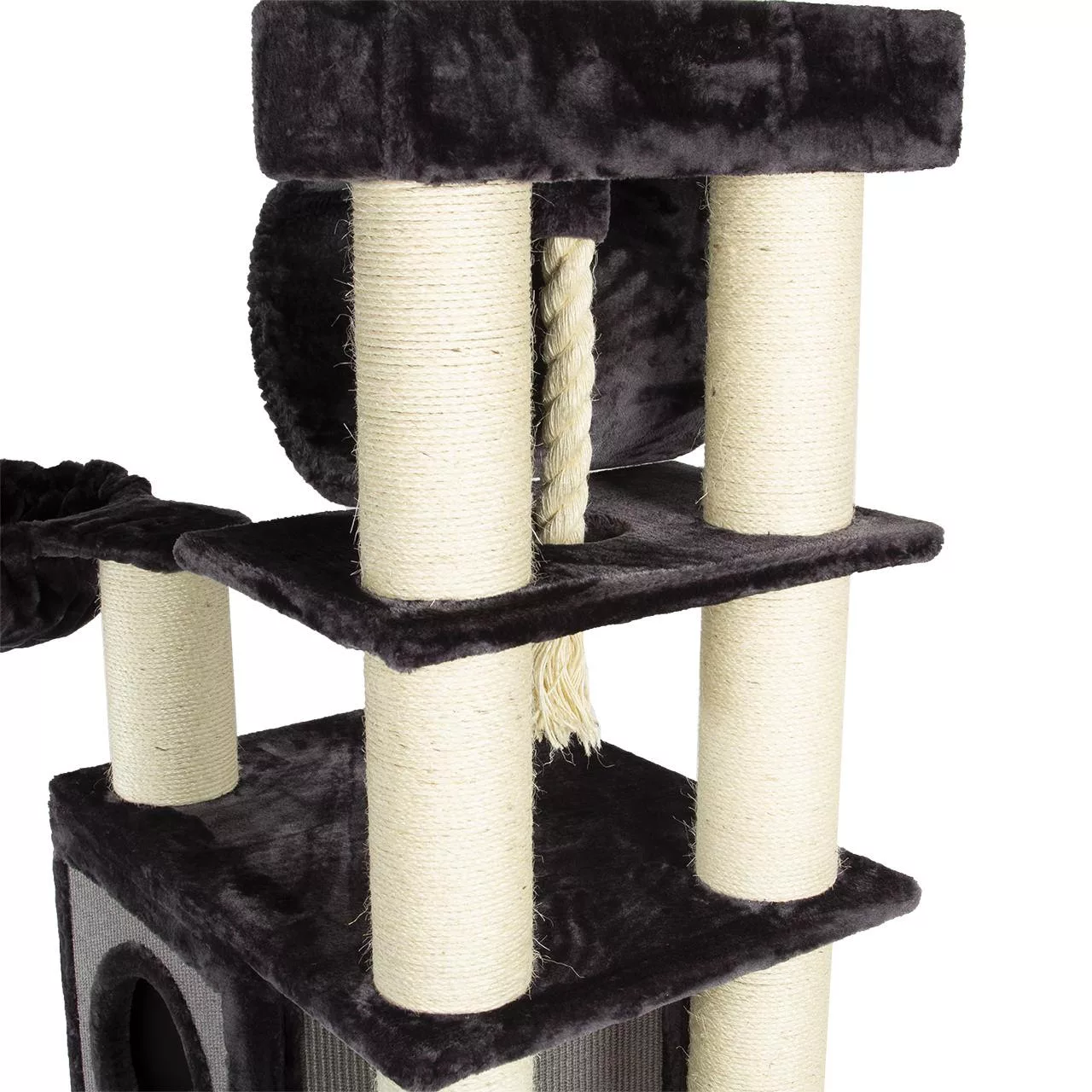 Size (W/D/H)approx. 122,0 x 105,0 x 171,0 cm Weight approx. 71,40 kg Tribe Ø15 cm Baseplate (W/D/H)approx. 80 x 60 x 4 cm Large lying place on top (B/T)approx. 57 x 46 cm Tunnel Ø:35 cm Kuschelnest Ø42 cm Colors beige
